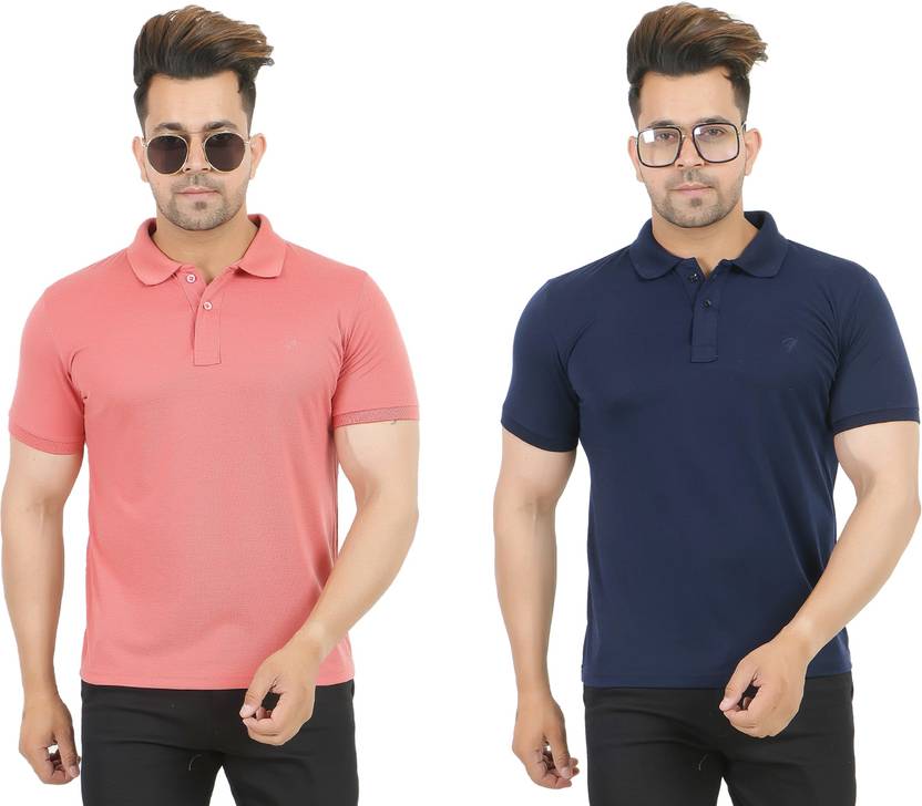 ROGER FEDERER Pack of 2 Men Solid Polo Neck Cotton Blend Multicolor T-Shirt