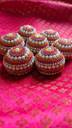 Puja aur shagun ke liye banayi gayi ye supari set har tyohar ko banaye aur bhi shubh. Lal patthar, sunehri moti aur safed motiyon se saja hua har tukda ek alag hi roop deta hai aapke mandir ya gift box ko.