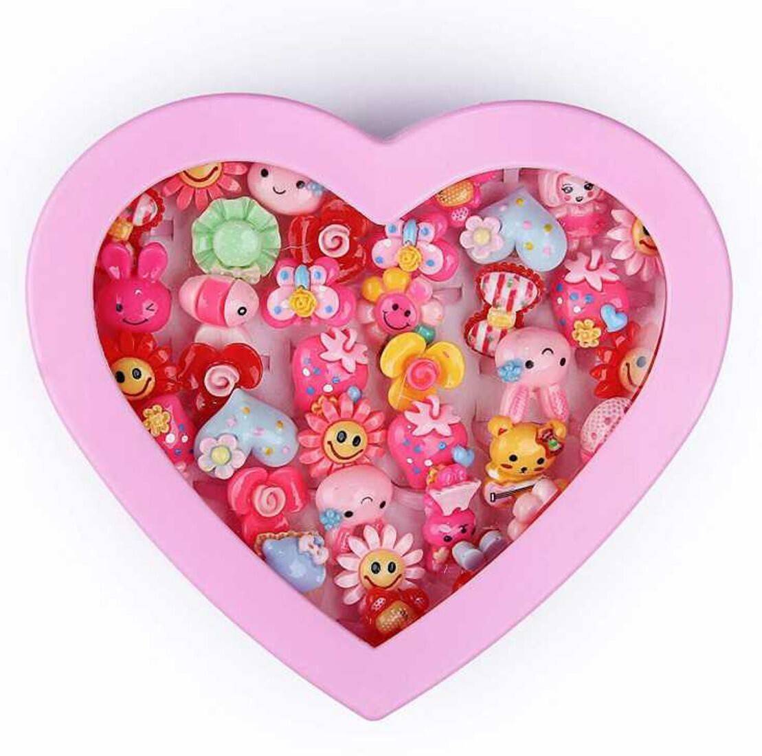 A Perfect product for Gift Kids girls. Suitable for Girls in Age between 2-10 Year. Ideal to be used as a return gift on any occasion. Beautiful kids cartoon shaped plastic play toy adjustable fancy rings for girls contain 36 pcs durable set made up of high quality plastic and crafted unique and attractive that will make your daughters mesmerized. They are packed in a cute pink heart shape box. Perfect for birthday goodie bags, pretend play and dress up rings, tea party, treasures box and more. These rings are extremely adjustable according to the thickness of your finger. No more size and age related anxiety before initiating a purchase.