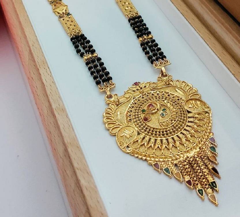 Trending Brass Gold Pleated Matte Heavy Mangalsutra For Womens Wear