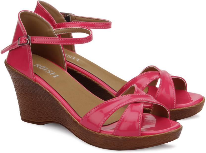 Roish Women Cinderella Women Wedges Sandal (Pink, Brown , 7 UK/India)