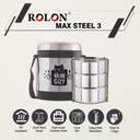ROLON Max Steel 3 | 3 Stainless Steel Containers | Stainless Steel Insulated Lunch Box 3 Containers Lunch Box (1260 ml, Thermoware)