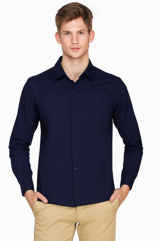 ROMADO Men Solid Casual Dark Blue Shirt
