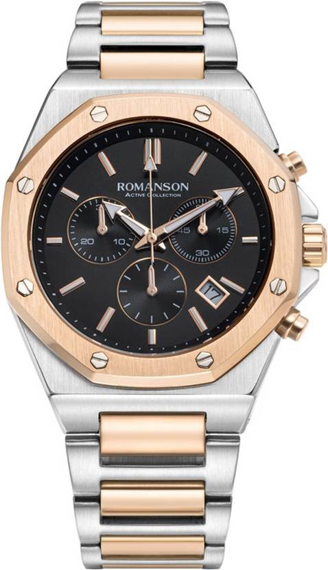 Elevate your wrist game with this striking timepiece. The black dial exudes boldness, while the stainless steel strap ensures durability and a modern edge. Precision meets style with the chronograph feature, making this Romanson watch a perfect companion for those who appreciate both functionality and sophistication. Make a statement with every tick.