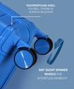 Monochromatic Design featuring same color body, Wheels, Handle, TSA Lock, Zipper and Trolley handle