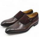 Brown Leather Suede Formal Single Monk Strap Shoes for Men