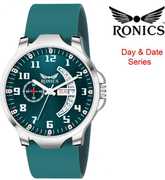 New stylish watch fancy quality green dial green silicon strap day date analog