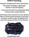 Ronty stylish women's handbags are a must have accessory. Available in an array of colors and patterns, you're sure to find one to match any outfit or occasion. Made from high quality leather with beautiful stitching details, these bags are designed to last through years of use. Spacious interiors provide plenty of room to carry all of your daily essentials, with separate pockets to keep smaller items organized. External pockets make it easy to access phone or keys without having to open the main compartment. Adjustable shoulder straps allow comfortable carrying by hand or over the shoulder. Whether you're heading to work, out for dinner or shopping with friends, these versatile handbags are the perfect finishing touch to any look.