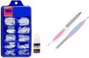 Key Features | - 100 white False Nails Durable, flexible nail tips in 10 sizes for a custom fit on every finger., Professional-Grade Nail Glue Strong hold adhesive ensures nails stay in place for days—no lifting or popping off., 2 Dual-Grit Nail Files Included Shape, prep, and finish with coarse and fine grit for smooth, even edges., Easy to Apply & Customize Ready for polish, gel, or nail art—perfect for DIY or salon use., Natural Fit & Look Curved design hugs the natural nail bed for a secure and seamless look., Suitable for All Nail Types Works great with natural nails, acrylic systems, or gel overlays., Lightweight & Comfortable Thin yet strong material feels light and natural on nails., Reusable Storage Box Organized by size, making refills and application fast and easy.