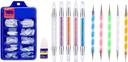 ROODILES Artificial Nails 100 pcs with Glue, Dual Ended Nail Dotting Tools & Precision Dual Ended Acrylic Nail Brush Pens, Salon-Quality (12 Items in the set)
