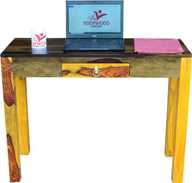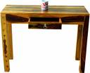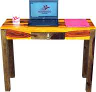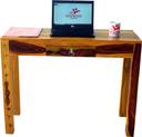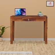 ROOFWOOD Sheesham Wood Study Wrtiting Table for Living Room | with 1 Drawer | Brown Walnut Color Mette Finish Solid Wood Study Table (Free Standing, Finish Color - Teak Finish, Pre-assembled)
