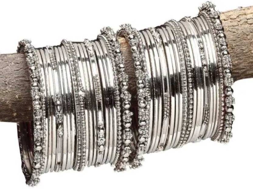 OXIDISED ANTIQUE SILVER METAL BANGLE BRACELET SET