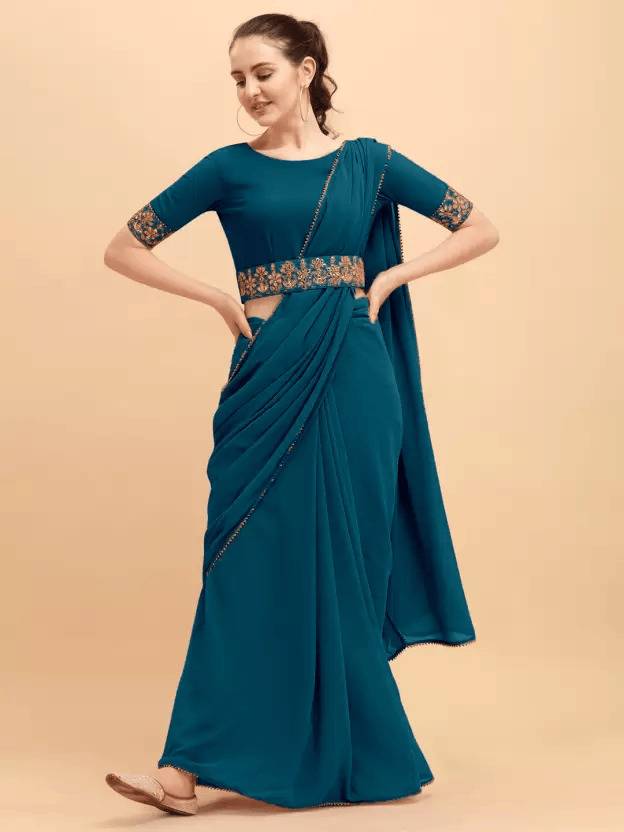 Solid/Plain Bollywood Georgette Saree (Light Green)