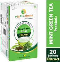 Roots & Stems Green Tea Mint Extract Premix |Instant Mix Green Tea with Probiotic for Fat Loss Mint Green Tea Box  (20 Sachets)