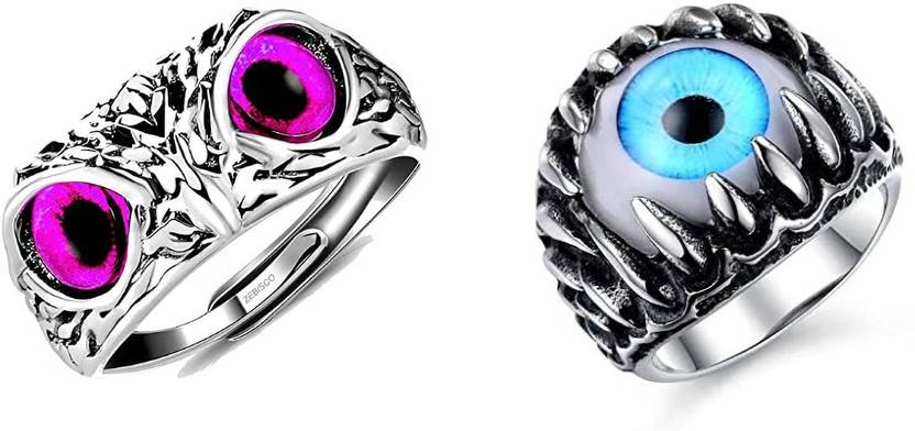 ROOTWAVE Pink adjustable owl eyes ring and evil eyeball ring Metal, Alloy, Stainless Steel, Stone, Sterling Silver Silver Plated Ring
