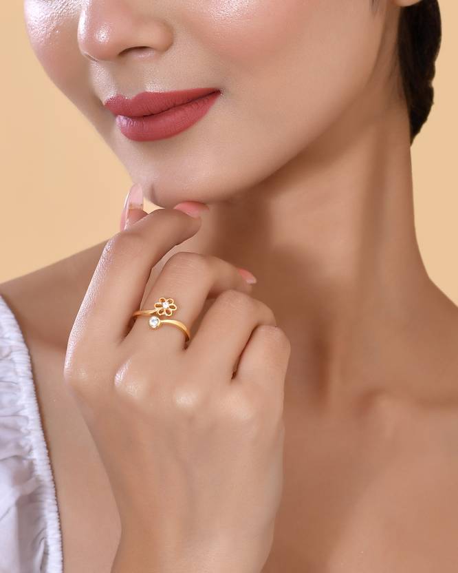 A twist to classic flower ring, made in 925 sterling silver & studded with AAA+ quality American Diamond & Plated with 1 micron 22kt gold. Perfect to gift to special women & girls