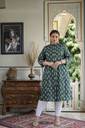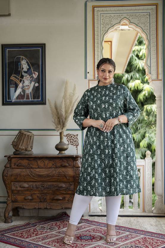 Women Floral Print Pure Cotton A-line Kurta (Dark Green, White)