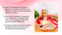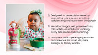 Boasting a nourishing yet delightful multigrain blend, these baby purees combine banana, coconut milk, pearl millet, red lentils, pumpkin, green gram beans, oats, pearls, barley, dates, cashews, and select spices. Further enhanced with the natural goodness of water, this thoughtfully curated mix can ensure a wholesome and delicious mealtime experience for your little one.