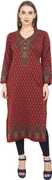 Features: Straight Kurti, Full Sleeves, Mandarin Collar V Neck, Calf Length, 2 Side Pockets, Jacquard Knitting, Length is 45-46 Inches