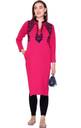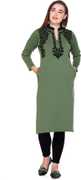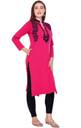 Features: Straight Kurti, Full Sleeves, Mandarin Collar V Neck, Calf Length, 2 Side Pockets, Jacquard Knitting, Length is 45-46 Inches