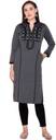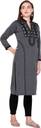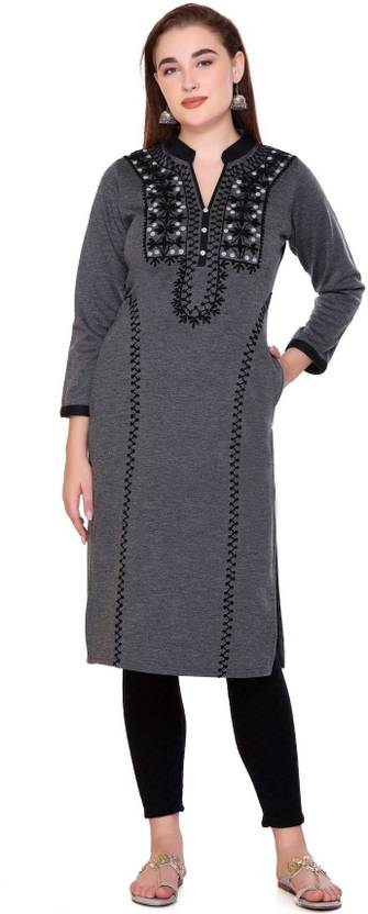 Features: Straight Kurti, Full Sleeves, Mandarin Collar V Neck, Calf Length, 2 Side Pockets, Embroidered Knitting