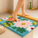 Roseate Microfiber Bathroom Mat (Sky Blue, Pink, Green, Medium)