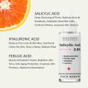 Reveal clearer, smoother, and healthier-looking skin with this advanced multi-action face serum. Powered by a gentle yet effective blend of Salicylic Acid to exfoliate and unclog pores, Hyaluronic Acid to deeply hydrate, Ferulic Acid to provide antioxidant protection, Allantoin to soothe irritation, and Licorice Extract to brighten dull skin and reduce pigmentation.