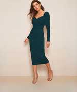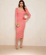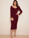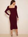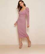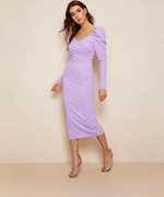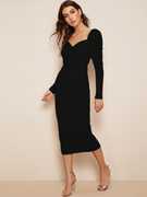 black bodycon square neck midi knee length puff sleeve party wear long dress