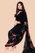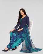 Flaunt a new ethnic look with this dress material. This Italian Leon Crepe suit is beautifully adorned with Print work comes along with solid Italian Leon Crepe bottom and martina chiffon dupatta makes it appear more adorning. Women can buy this suit to wear for their upcoming festivals, homely functions, parties, kitties, weekend get together. Get this unstitched suit stitched according to your fit and comfort. Team it with stylish accessories to make your looks more beautiful. Note:- The actual product may differ slightly in color and design from the one illustrated in the images when compared with computer or mobile screen.
