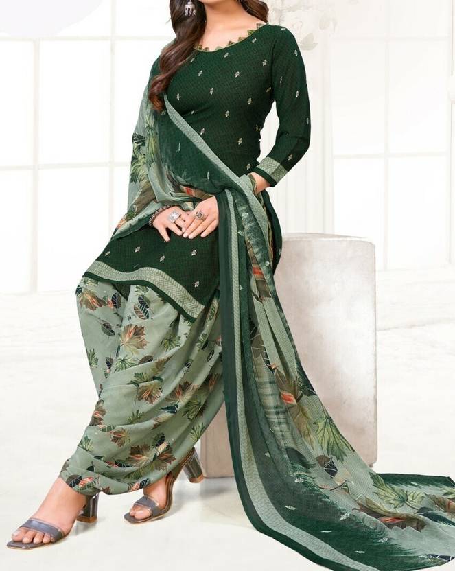 Flaunt a new ethnic look with this dress material. This Italian Leon Crepe suit is beautifully adorned with Print work comes along with solid Italian Leon Crepe bottom and martina chiffon dupatta makes it appear more adorning. Women can buy this suit to wear for their upcoming festivals, homely functions, parties, kitties, weekend get together. Get this unstitched suit stitched according to your fit and comfort. Team it with stylish accessories to make your looks more beautiful. Note:- The actual product may differ slightly in color and design from the one illustrated in the images when compared with computer or mobile screen.
