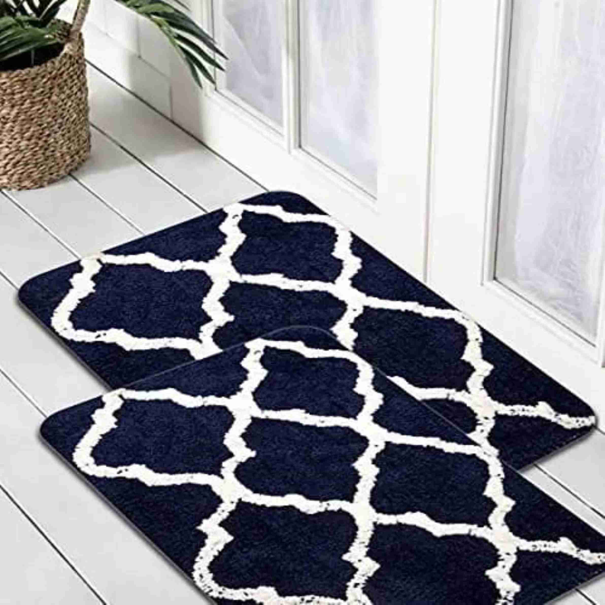 Microfiber Door Mat (Blue, Pack of 2, Medium)