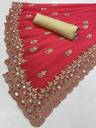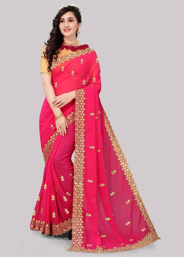 Excellent georgette fabrics with Heavy embroidery design machine work with kaju(diamond) & Round mirror handwork with cutwork border with satin fabrics blouse piece traditional trending Mirror Saree