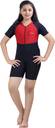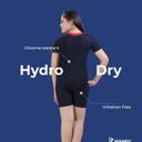 Featuring four-way stretch fabric and soft materials, this half-length bodysuit offers flexible movement and all-day comfort. Thanks to the hydro dry design, it keeps wearers feeling fresh and dry during swimming sessions, allowing for uninterrupted fun. The zip closure enhances convenience, making it easy to put on and take off. With irritation-free construction, this swim-dress ensures a smooth experience, ideal for active girls who want to focus on enjoying their time in the water.