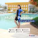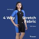 Featuring four-way stretch fabric and soft materials, this half-length bodysuit is designed for flexible movement and all-day comfort. Thanks to the hydro dry technology, it effectively keeps wearers feeling fresh and dry, allowing them to focus on their activities without discomfort. Moreover, the easy zip closure simplifies changing, while the irritation-free seams ensure that even the most active children can swim freely without distractions.