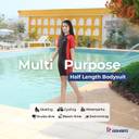 Featuring four-way stretch fabric and soft materials, this half-length bodysuit is designed for flexible movement and all-day comfort. Thanks to the hydro dry technology, it effectively keeps wearers feeling fresh and dry, allowing them to focus on their activities without discomfort. Moreover, the easy zip closure simplifies changing, while the irritation-free seams ensure that even the most active children can swim freely without distractions.