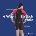 Featuring four-way stretch fabric and soft materials, this half-length bodysuit is designed for flexible movement and all-day comfort. Thanks to the hydro dry technology, it effectively keeps wearers feeling fresh and dry, allowing them to focus on their activities without discomfort. Moreover, the easy zip closure simplifies changing, while the irritation-free seams ensure that even the most active children can swim freely without distractions.