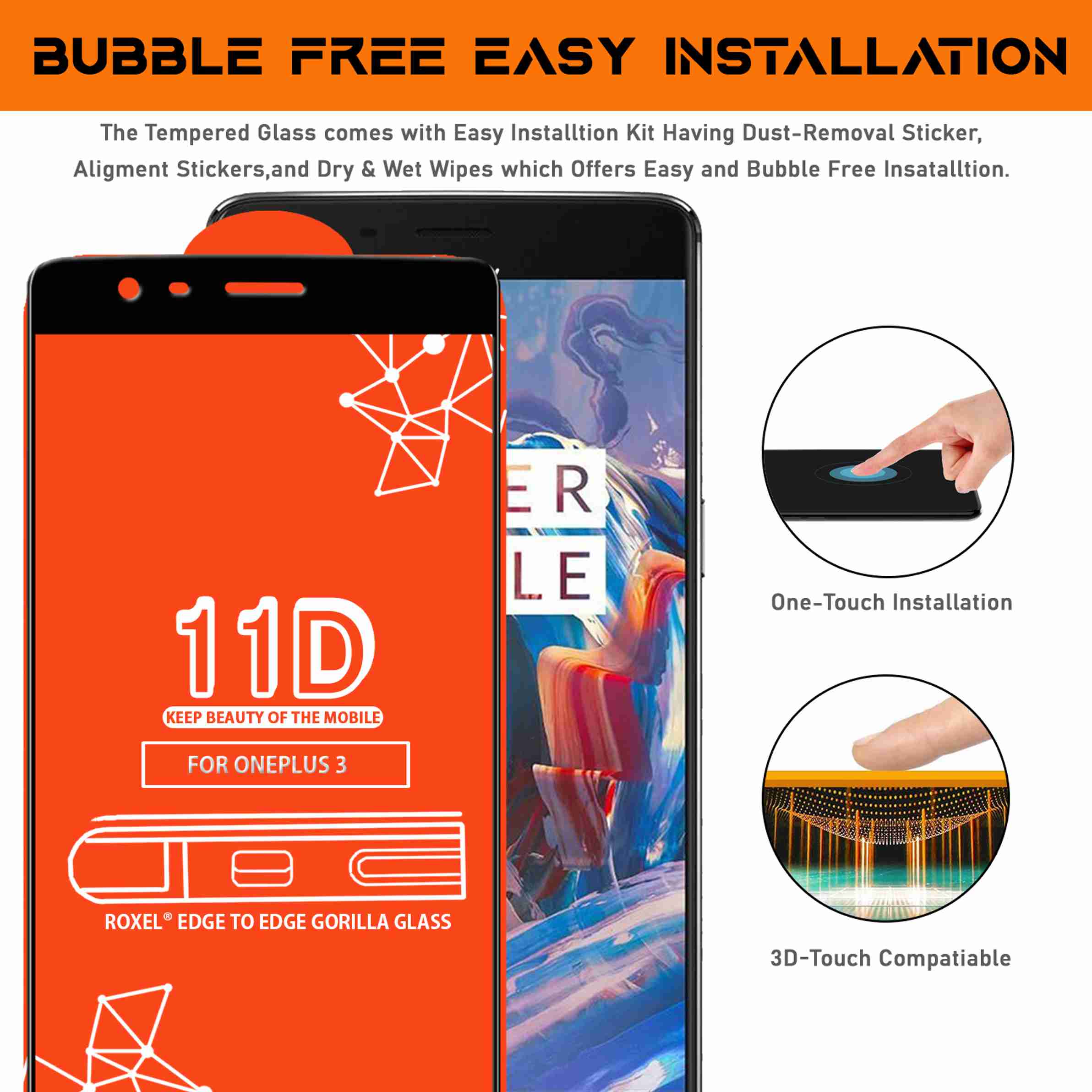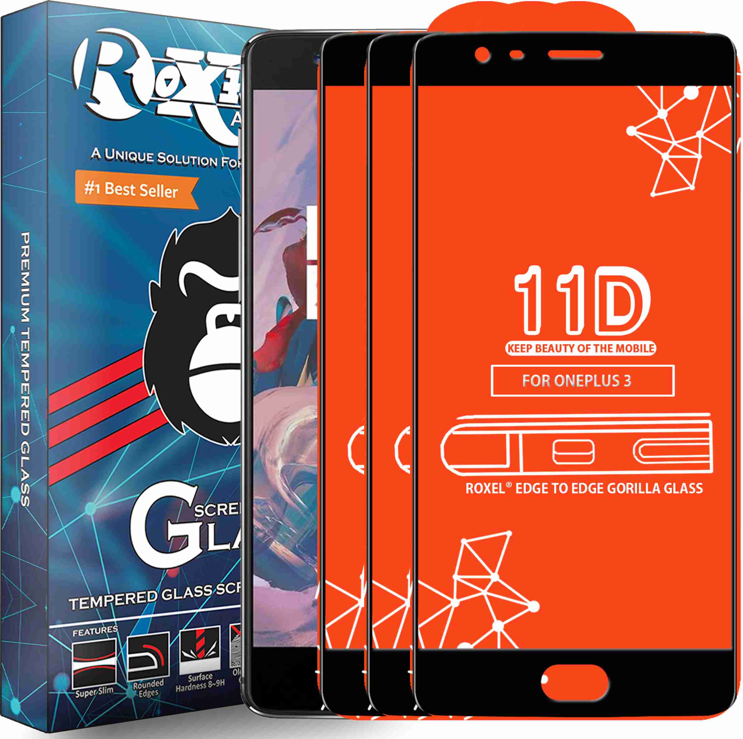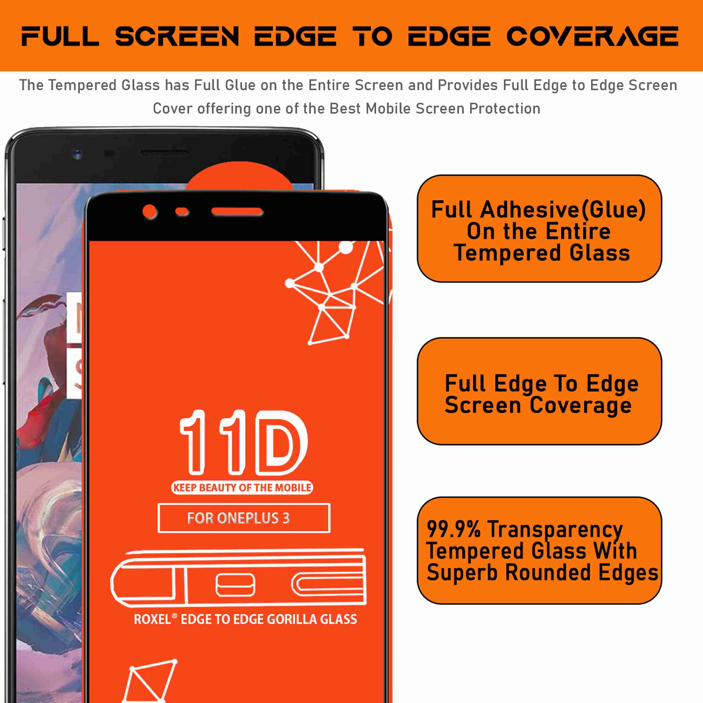 Edge To Edge Tempered Glass for OnePlus 3 (Pack of 3)