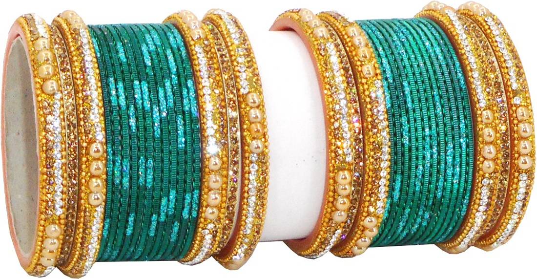 This ROYAL Zircon Bridal bangle set cum chooda made from high quality metal.You can use all of the things separately as your choice , Women love jewellery; specially zircon & stone jewellery adore a women. They wear it on different occasion. They have special importance on ring ceremony, wedding and festive time. They can also pair the bangle with their matching dresses,That Shine never get fade,Girls can also use these GLOSSY bangles separately which is in trend,This Bangle set has ROYAL Premium look which makes you different from others because This Royal Bangle set enhance the beauty of your hands..... Make your moment memorable with this range. This Royal jewel features a unique one of a kind traditional emblish with Stone and beautiful shiny zircon finish,and we definitely know that you love it .