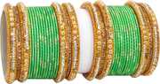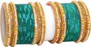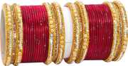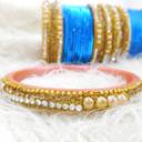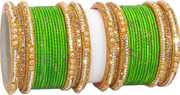 This ROYAL Zircon Bridal bangle set cum chooda made from high quality metal.You can use all of the things separately as your choice , Women love jewellery; specially zircon & stone jewellery adore a women. They wear it on different occasion. They have special importance on ring ceremony, wedding and festive time. They can also pair the bangle with their matching dresses,That Shine never get fade,Girls can also use these GLOSSY bangles separately which is in trend,This Bangle set has ROYAL Premium look which makes you different from others because This Royal Bangle set enhance the beauty of your hands..... Make your moment memorable with this range. This Royal jewel features a unique one of a kind traditional emblish with Stone and beautiful shiny zircon finish,and we definitely know that you love it .