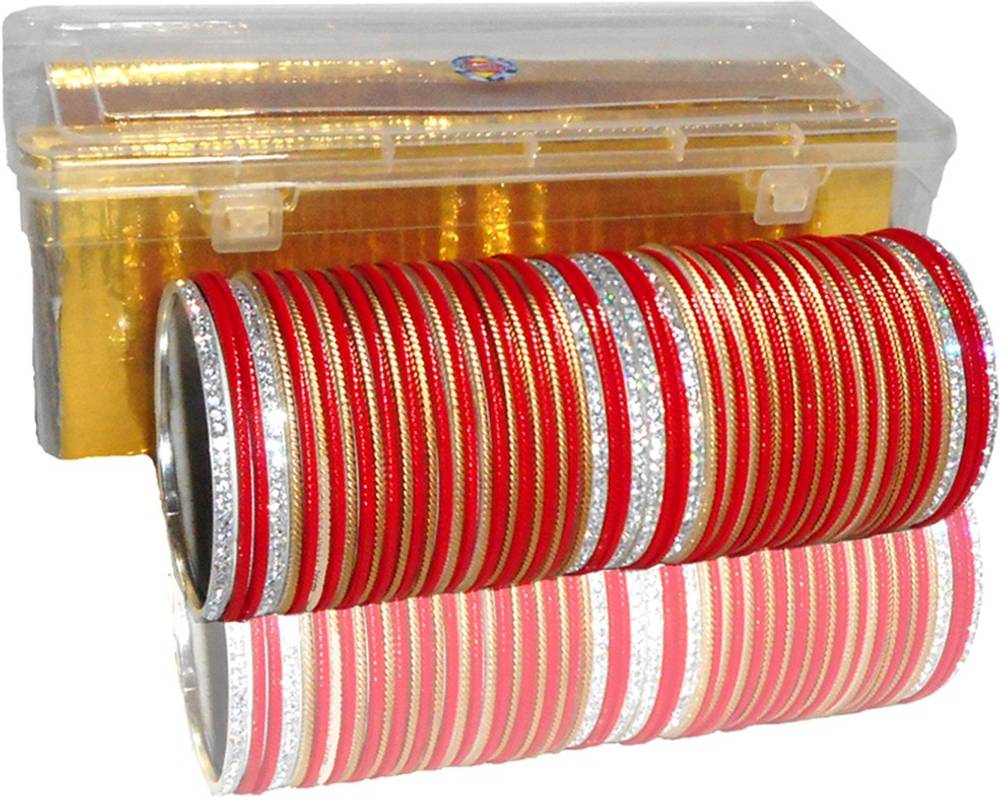 This ROYAL Bridal bangle set made from high quality metal .You can use all of the things separately as your choice , Women love jewellery; specially zircon & stone jewellery adore a women. They wear it on different occasion. They have special importance on ring ceremony, wedding and festive time. They can also pair the bangle with their matching dresses,That Shine never get fade,Girls can also use these GLOSSY bangles separately which is in trend,This Bangle set has ROYAL Premium look which makes you different from others because This Royal Bangle set enhance the beauty of your hands..... Make your moment memorable with this range. This Royal jewel features a unique one of a kind traditional emblish with Stone and beautiful shiny zircon finish,and we definitely know that you love it .