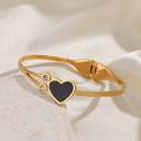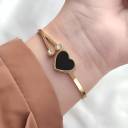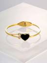 Golden Color Stretchable/Openable Love Black Heart Stone Bracelet For Girls, Fancy Diamond Nug Crystal Black Gemstone Heart Shape Kada Bangle Wrist Band Gift Jewellery For Girl's And Women's