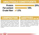 *L.I.P.: protein selected for its very high assimilation, hydrolysed animal proteins, rice, maize gluten, maize, minerals, Dehydrated poultry protein, borage oil, maize flour, vegetable protein