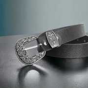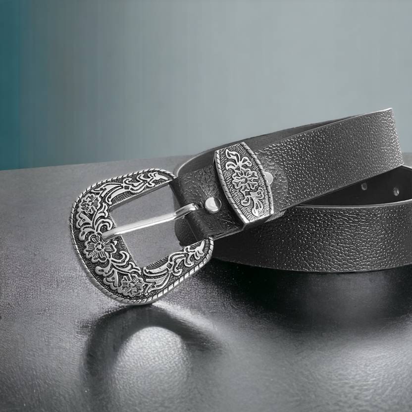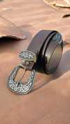 GENUINE LEATHER STRAP WITH 6 HOLES, 1 SILVER ANTIQUE BUCKLE