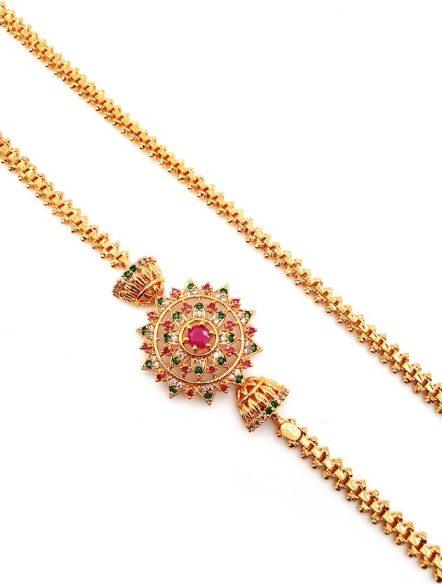 Stylish Kerala Designed AD Stone Mugappu Chain, Size-24" Inch, Width-6mm, 1 Gram Gold-plated Plated Brass, Copper Chain Set