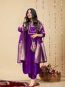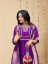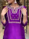 Experience the beauty of our Traditional Kurta Set, crafted from luxurious chanderi fabric and adorned with intricate embroidery and golden thread work. A delicate combination of colors and textures, this exclusive 3-pc set includes a kurti, pant, and chanderi jacquard dupatta, available in both color Purple & Pink. Bring a touch of elegance to your wardrobe with this timeless classic.