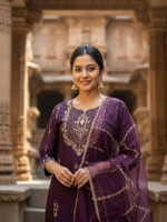 Featuring a traditional embroidered pattern, this women’s kurta, pant, and dupatta set presents detailed stitching that adds texture and character to this ensemble. The embroidery is arranged thoughtfully on the kurta and subtly reflected on the dupatta, creating a cohesive look. The delicate motifs introduce a cultural element that complements the silhouette, enhancing the design while maintaining a balanced and composed appearance.
