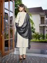 Boasting high-quality fabric construction, this set reflects careful attention to material selection. The kurta, trousers, and dupatta are crafted from fabrics chosen for their softness, comfort, and graceful drape. The fabric quality ensures the embroidery is highlighted neatly on the kurta, while the printed dupatta maintains its detailing without appearing heavy. These trousers, in a solid hue, provide a durable yet lightweight base that completes this set with ease.