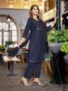 This Navy Blue Colour Kurta Set Is The Fun Attire Of The Moment. Get It On And Style It With A Handbag And Earings For The Perfect Day Look. Its Casual Wear And Cute - The Essentials For Your Wardrobe