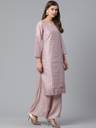 Featuring a round neck, this set can help you feel cool and comfortable on hot days. It can highlight your neck curves for a sleek and sophisticated appearance. Also, it offers three-quarter sleeves for proper arm coverage and flexible movements for all-day comfort. The palazzos can provide a breezy and relaxed look to help you feel calm and composed on your special days. And, the simple embroidery on this dupatta can add a graceful touch to the overall ensemble. The elasticated waistband on these palazzos makes them easy to wear and offers a flattering fit that hugs your body for an ideal shape.