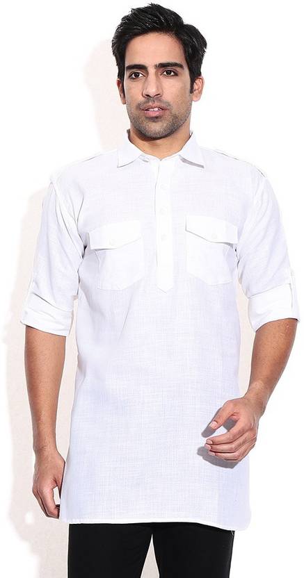 Men Solid Cotton Linen Pathani Kurta (White)